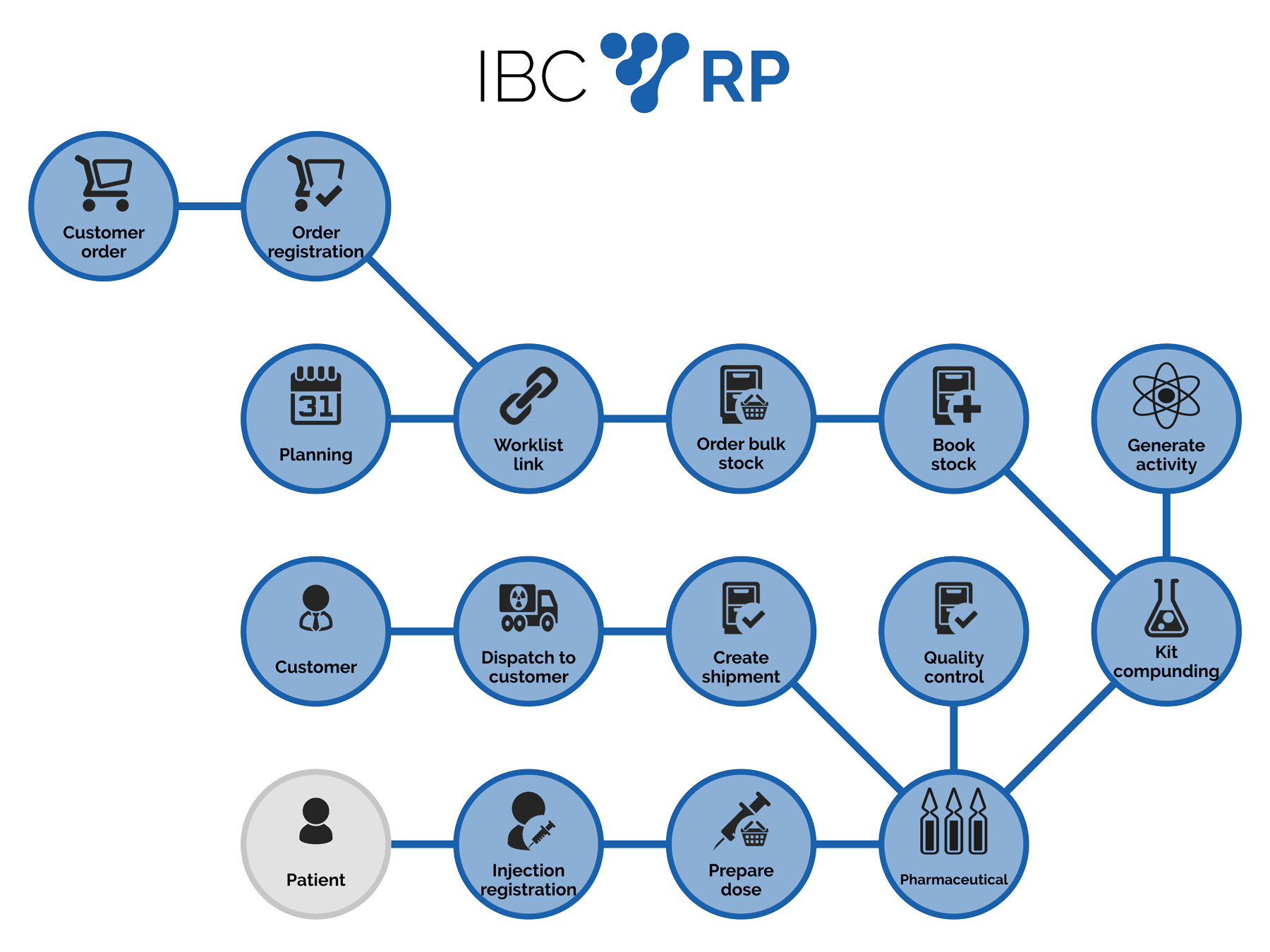 IBC Radiopharmacy provides a single point of data entry, resulting in complete traceability from raw materials to release and delivery of manufactured multi or unit dose radiopharmaceuticals, reduction of data entry overhead and related errors, improved product quality and patient safety.